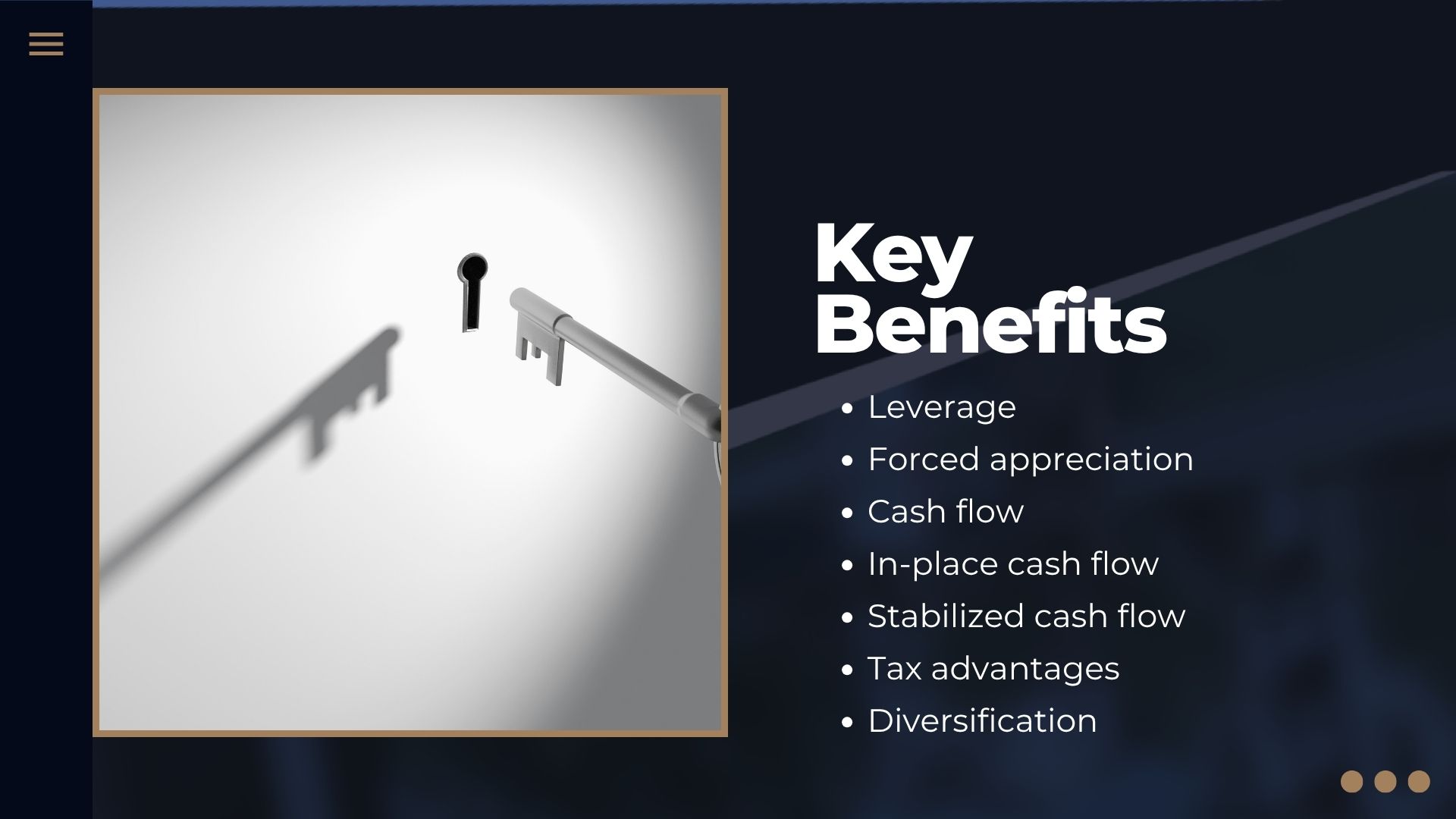 - Experiences the benefits of real estate investment, such as income generation, tax benefits, diversification, and property appreciation, all without the operational complexities of managing a property.