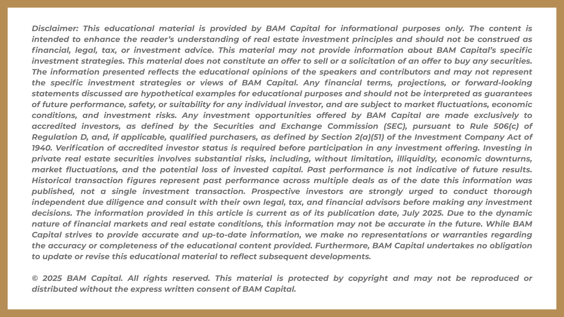 For additional multifamily real estate insights, visit Pathways to Passive Wealth, BAM Capital’s new platform designed to make real estate investing more accessible, transparent, and achievable for aspiring and experienced investors.