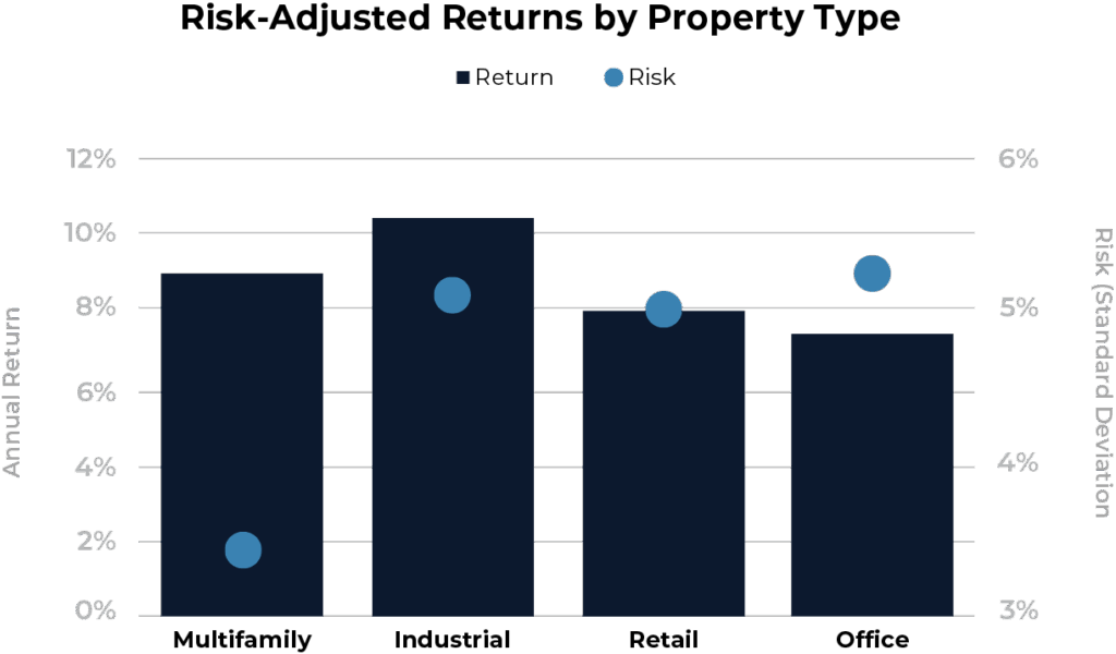 Source: National Council of Real Estate Investment Fiduciaries (NCREIF) Property Index. National Council of Real Estate Investment Fiduciaries. (2023). “Average Annualized Return.”